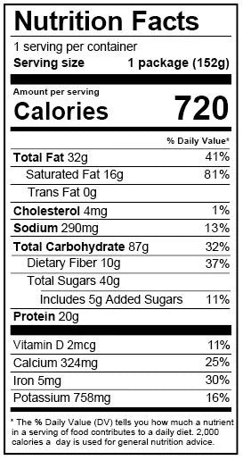 Ingredients: Granola (Organic Gluten Free Rolled Oats, Pumpkin Seeds, Organic Maple Syrup, Organic Coconut Oil, Brown Rice Crisps, White Chocolate Chips (Sugar, Palm Kernel Oil, Milk, Nonfat Milk, Hydrogenated Palm Oil, Soy Lecithin), Organic Chia Seeds, Hemp Hearts, Sugar, Vanilla Extract, Orange Zest, Orange Extract, Salt, Cinnamon, Nutmeg, Cardamom, Ginger), Nonfat Powdered Milk, Cranberries