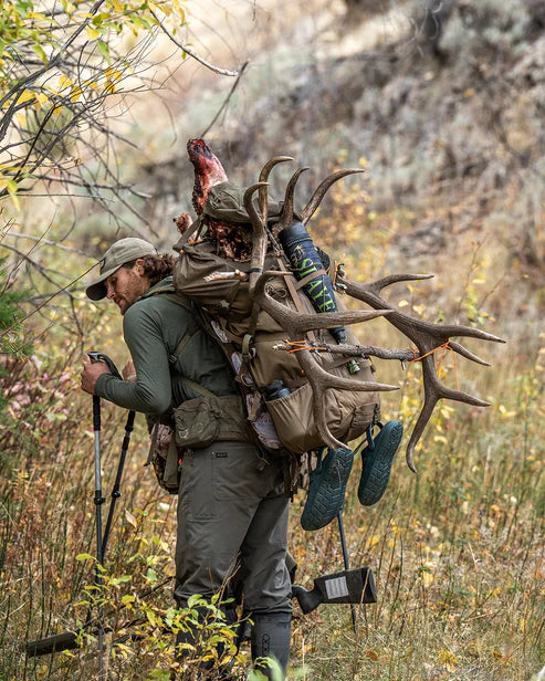 When it’s time to pack out, detach your pack, strap your game bags into the load-panel, and reattach your pack. This keeps the heaviest weight close to your back and reduces fatigue.