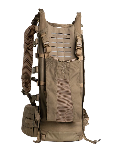 At the heart of Modframe™ is a low-profile load panel that replaces the traditional L-frame shelf. This keeps weight closer to your center of gravity, improving posture, energy efficiency, and control during heavy pack-outs.