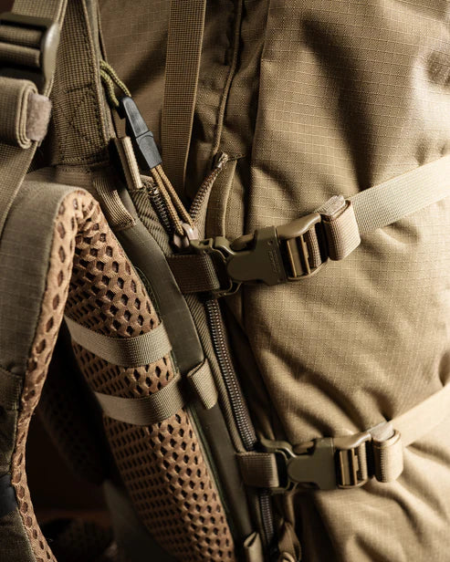 The Brooks 7000 was designed to pair perfectly with the Modframe™ or Mainframe™ for excellent stability and comfort under heavy loads. When the time comes to pack out quarters, detach the bag, secure your meat to the frame, and reattach, keeping weight tight to your back and over your center of gravity.