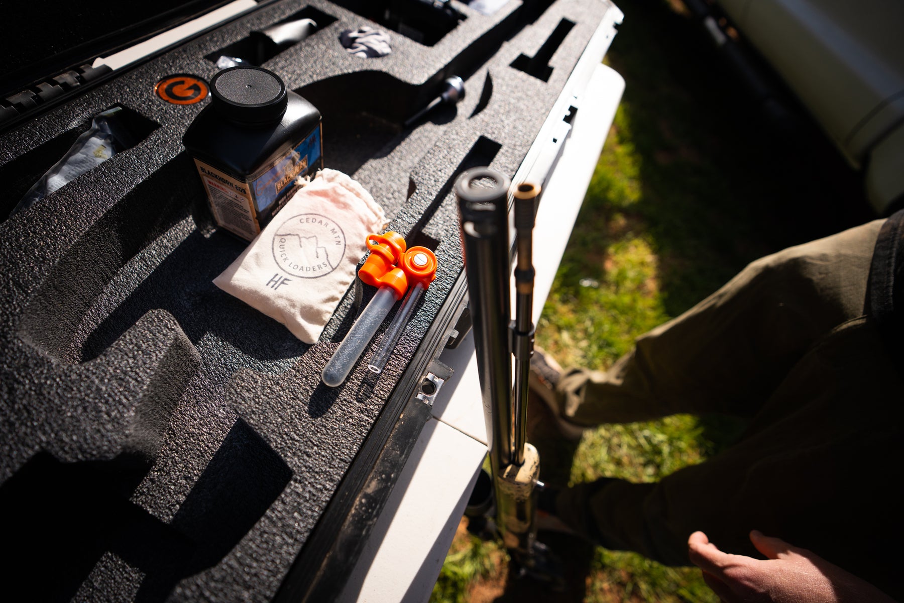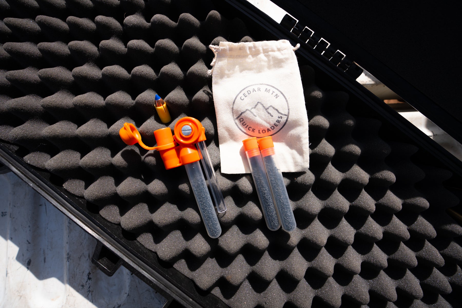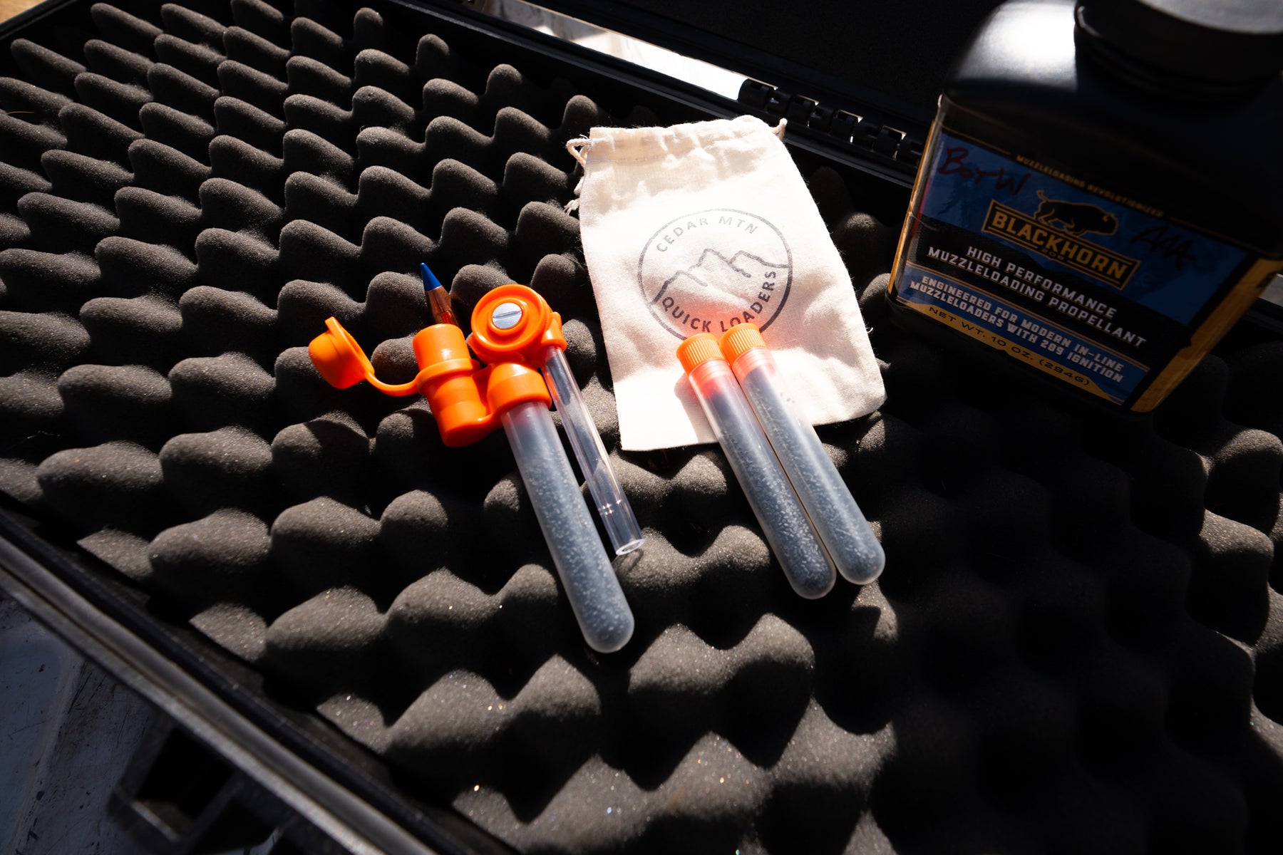 Includes (1) Cedar Mountain Quick Loader, (3) charge tubes, and a cloth pouch.