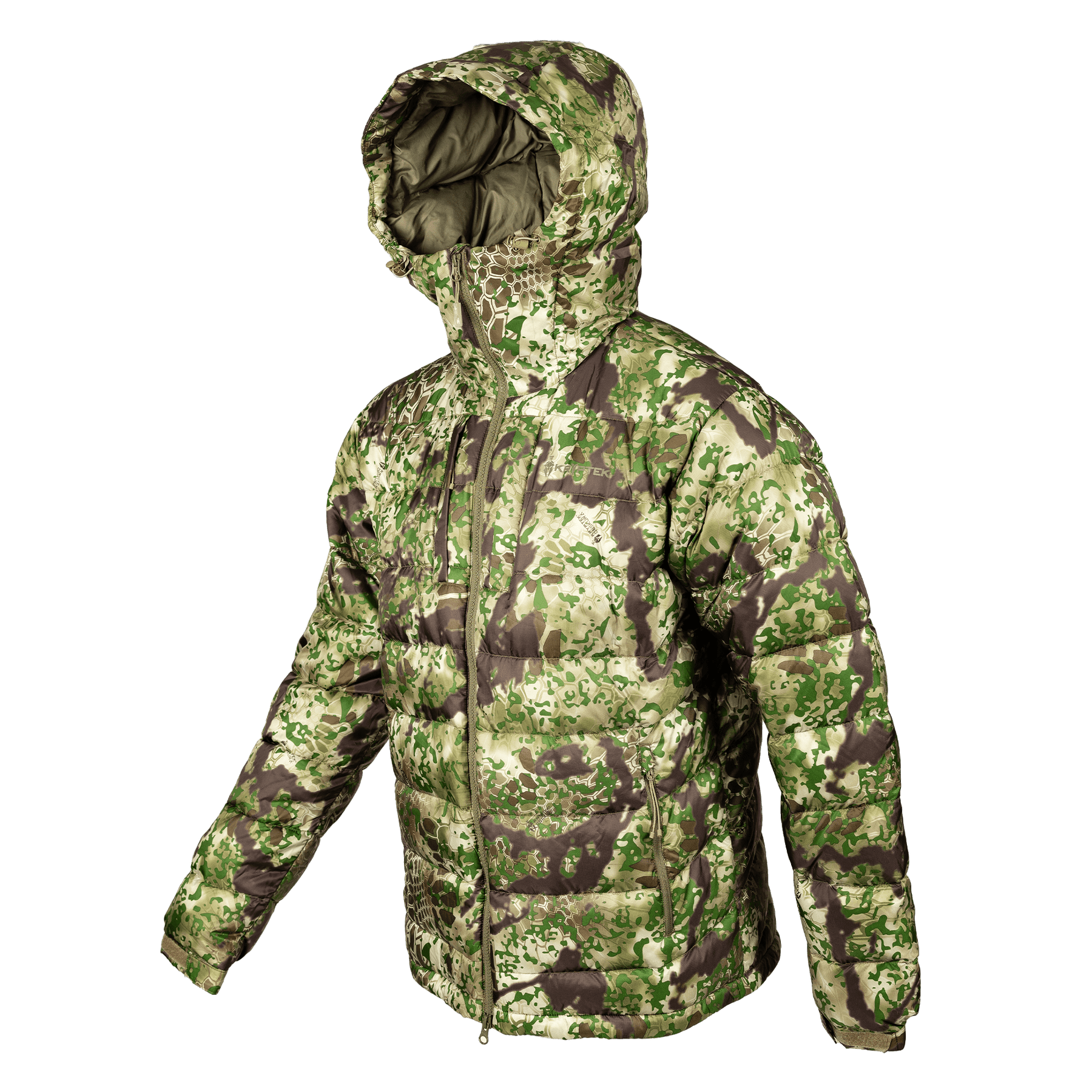 The Kryptek Ares Jacket delivers ultra-light down performance with maximum insulation, built for big game pursuits in extreme alpine environments. Crafted with 800 fill power goose down and a DWR-treated polyester shell, the Ares balances warmth and packability like no other. Kryptek Highlander™ camo ensures terrain-blending concealment from peak to basin. Shop for your camo pattern here.