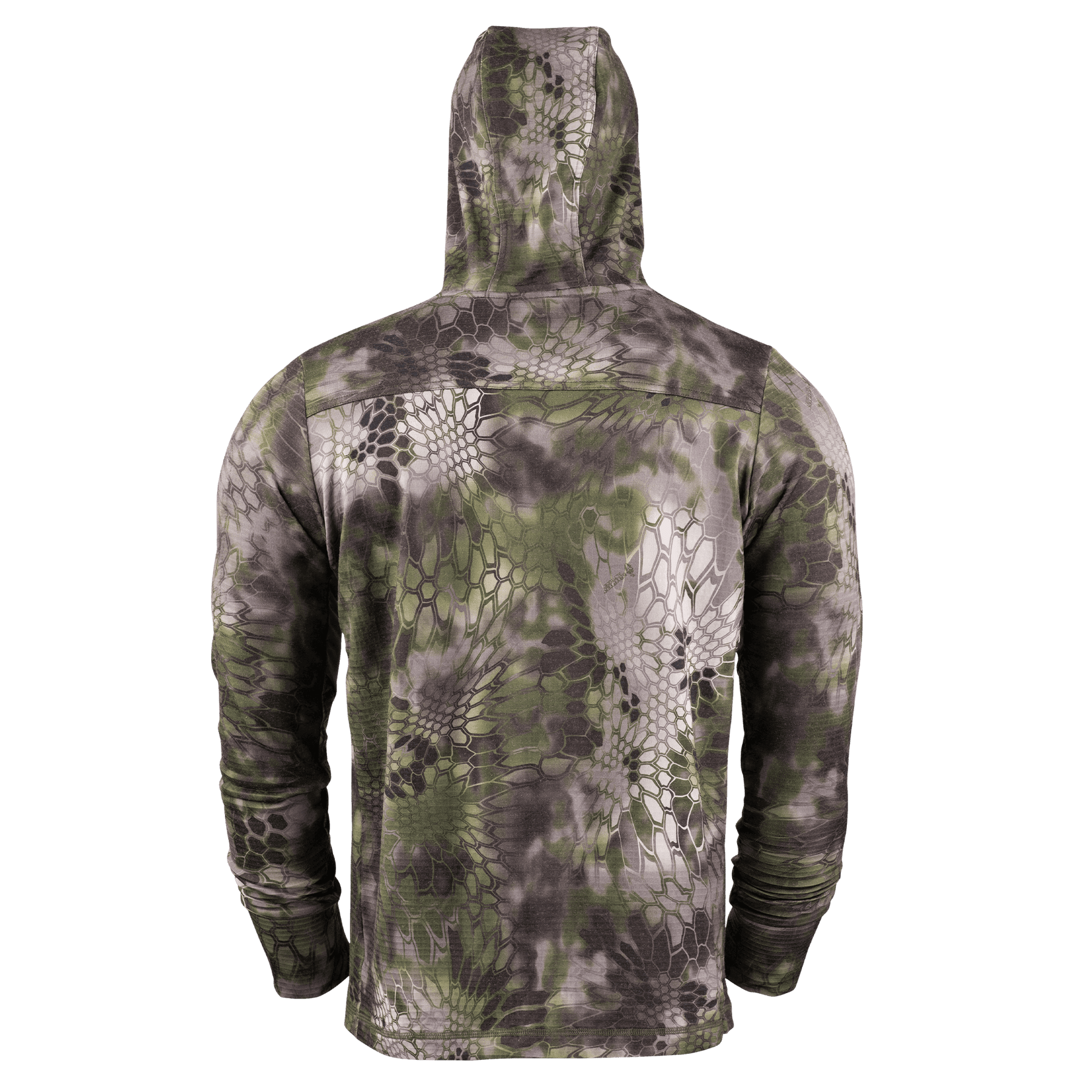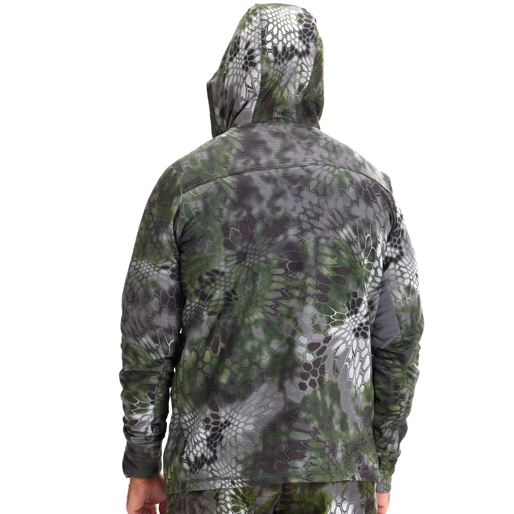 The Arma Full Zip Hoodie is the pinnacle of performance layering in the Kryptek® Altitude™ collection. Engineered from a premium grid fleece and merino wool interlock, this mid-layer balances heat retention and breathability for dynamic comfort in alpine environments. Designed to move with you, it features a full suite of technical enhancements—including a 2-point adjustable hood, bicep pocket, and underarm stretch panels—all wrapped in Kryptek’s most advanced concealment.
