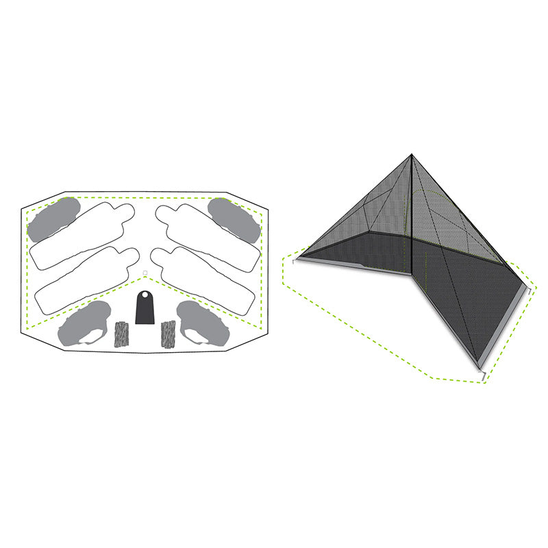 The PEAX Solitude 6 Half Nest offers full protection from bugs and ground-based critters while preserving a large open area inside the shelter. Designed for 3-4 hunters, it creates a clean, enclosed sleep zone while leaving room for gear, firewood, and stove, making it an ideal choice for added comfort on extended trips.