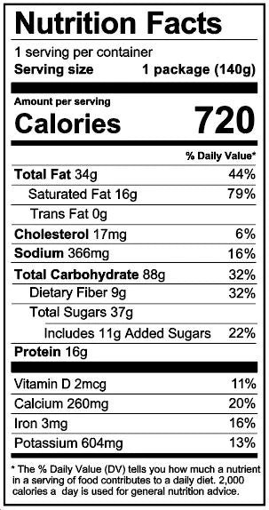 Ingredients: Granola (Organic Gluten Free Rolled Oats, Pecans, Caramel (Brown Sugar, Tapioca Syrup, Heavy Cream, Fructose, Milk, Sugar, Sea Salt, Natural Flavor, Salt ), Organic Maple Syrup, Organic Coconut Oil, Brown Rice Crisps, Brown Sugar, Vanilla Extract, Salt, Cinnamon), Nonfat Powdered Milk, Apples