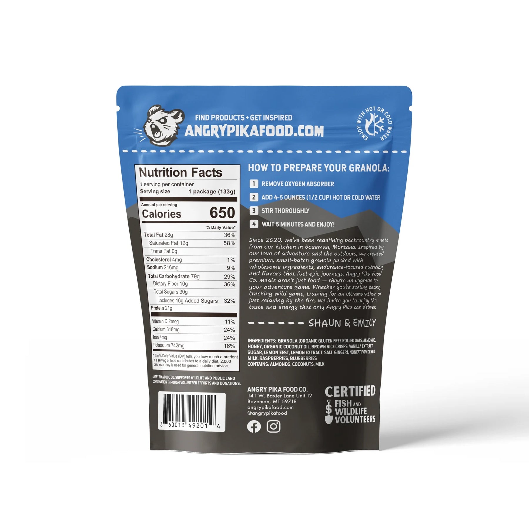 Nothing quite says good morning in the high country like our Lemon Berry Granola. Made from fresh lemon zest, honey sweetened granola, raspberries, and blueberries, this meal is perfectly balanced to keep you energized for hours.