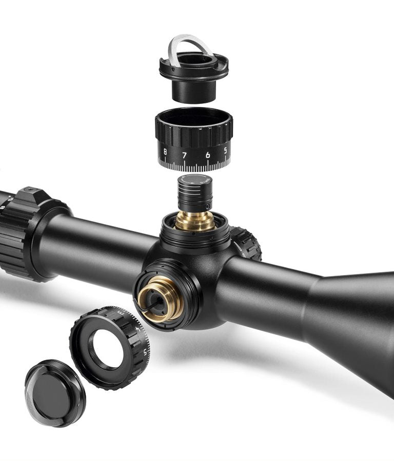 A Leica first - HUGE elevation range and first focal plane reticles combined with legendary Leica optics! Spot and hit long range targets like never before with the uncompromising new Leica PRS 5-30x56i riflescope. Its generous magnification range of 5x-30x offers much versatility in choosing the power setting that is right for your conditions, and its first focal plane Christmas Tree reticle with 2/10 mrad wind holds and an open dot (circle) center aiming point called the PRB (in honor of its designer, Cal Zant of PrecisionRifleBlog.com), insures your holdovers will always mean the same thing, no matter your power setting. Leica's PRS also offers 32 mrad of elevation correction, extremely generous for a 30x scope. Further, maximum optical performance insures high light transmission and color fidelity plus high-contrast images, as well as generous eye relief. This reduces eye fatigue and increases image clarity, which allows the shooter to conentrate fully on the target. Both the elevation and windage turrets feature well-defined tactile clicks that are accurate and precise throughout the entire range. Thanks to tool-free zeroing of the turrets, preci- sion sport shooters can react quickly and flexibly to different conditions. What’s more, the shooter can either activate the “zero stop” function or configure it individually, adapting the riflescope to custom requirements without the need for additional tools. Leica's PRS 5-30x56 sets a new benchmark for what a long range scope should be.