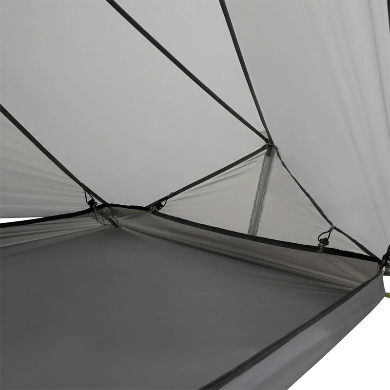 Most footprints are nothing more than a glorified ground tarp—flat, flimsy, and doing little to help you once the weather turns ugly. The Solitude 1P Footprint is built different. Its bathtub-style floor features raised sidewalls that block wind and divert it up away from you. This encourages healthy airflow by reducing convective cooling aka the wind robbing warmth by cutting through your sleeping bag. Allowing you to stay and sleep warmer. These raised side walls also encourage good air circulation which cuts down on condensation build up so your tent stays dryer on the inside.