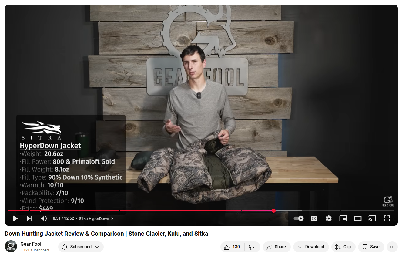 Evervista Experts test and prove the gear we carry. Check out this video of Brady comparing down jackets from SITKA and 2 other top brands.