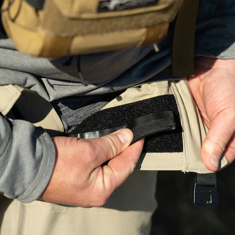 Our patented Contour Waist™ System is designed to provide an exact fit around your waist. No more buying pants that are slightly too large or don’t fit quite right. As well, this system allows you to adjust the waist size of your pants to allow for a proper fit when layering base layers or insulation bottoms underneath. To adjust the Contour Waist, follow the below steps: