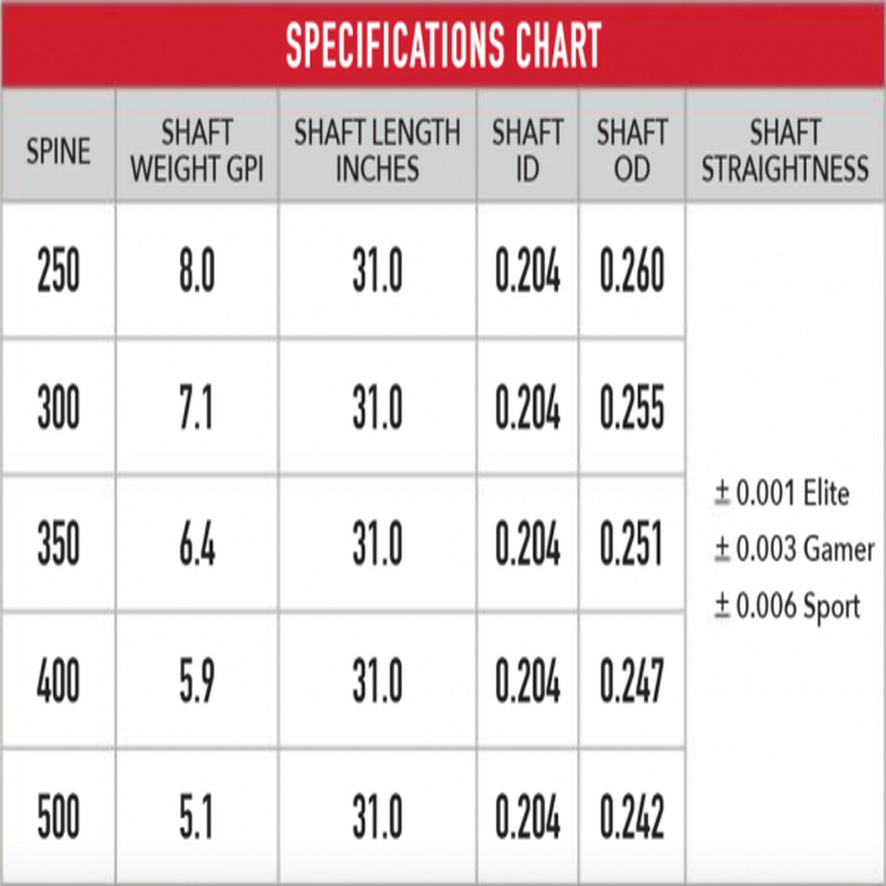 SMALL DIAMETER ARROW – HIGH MODULUS 100% CARBON FIBER CONSTRUCTION .204 DIAMETER FOR MAXIMUM SPEED & PENETRATION WITH LESS WIND DEFLECTION
