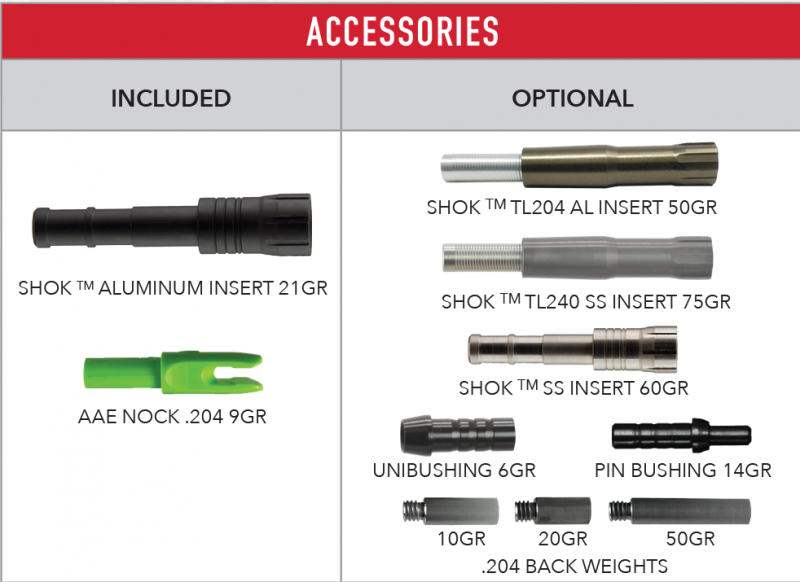 - Includes AAE IP Nock #5 and SHOK Aluminum Insert (21 grains)
